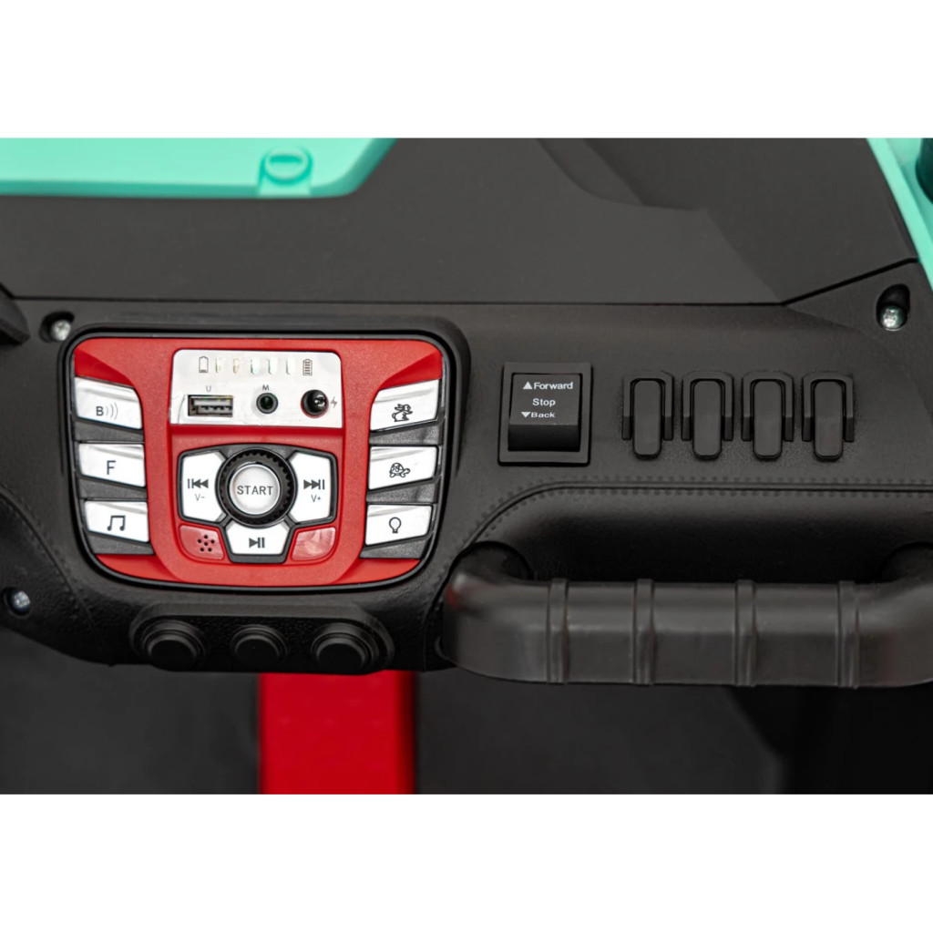 Es ist mit einem Öko-Ledersitz, Sicherheitsgurt, weichen EVA-Gummirädern und einem multifunktionalen Musikplayer ausgestattet. Der Musikplayer ist mit Radio, Bluetooth und USB-Anschluss ausgestattet.