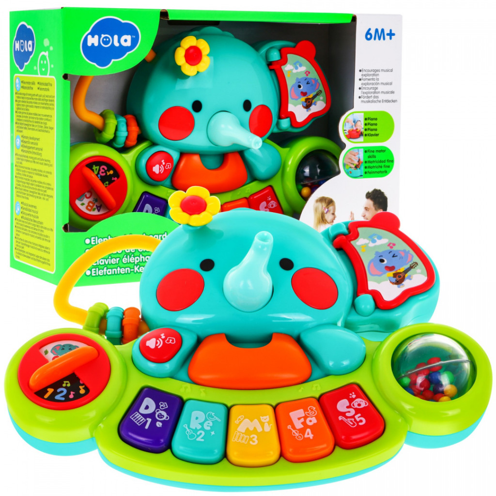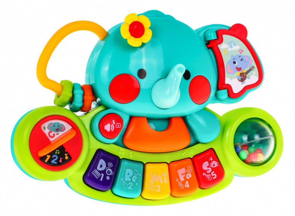 Interaktywny słonik z mini pianinem dla dzieci 6m+ Zabawka muzyczna + Grzechotka