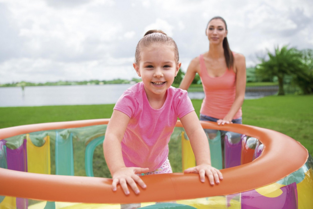 Aufblasbare Hüpfburg Dank der aufblasbaren Wand mit verstärkten bunten I-förmigen Trennwänden bietet Bestway Jumping Sicherheit beim Springen. Erwähnenswert ist, dass die Hüpfburg für Kinder bis zu einemGesamtgewicht von 85 kg geeignet ist und somit Spaß für die ganze Kindergruppe bietet.Abmessungen der aufblasbaren Hüpfburg Beckengröße ca. 180 x 86 cm Grundgewicht ca. 0,30-0,35 mm maximale Belastung ca. 85 lBestwaySpielgeräte Sprünge für Kinder Patch bunte VerpackungAbmessungen Durchmesser (cm) 180 Höhe (cm) 86 maximale Belastung (kg) 85 Gewicht (kg) 6,9