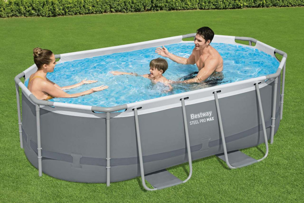 Plac Zabaw Dmuchany Sportowy Basen BESTWAY 53068 CentrumOgrodu.pl - dystrybutor sprzętu ogrodniczegoBasen Stelażowy 10 FT / 305 x 200 x 84 cm Power Steel BESTWAY