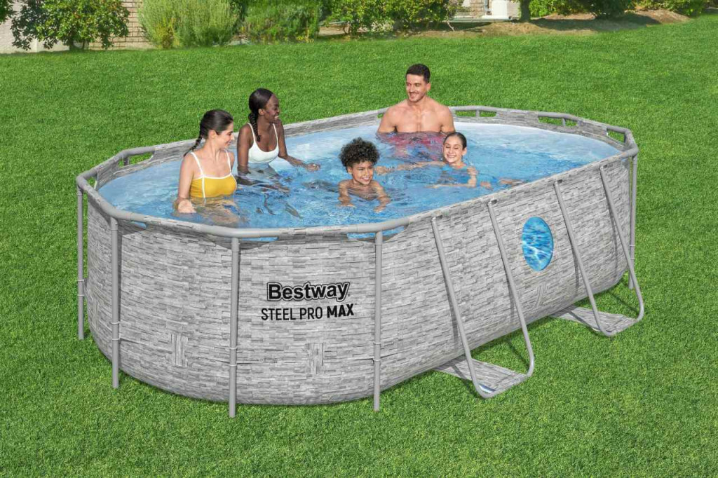 Plac Zabaw Dmuchany Sportowy Basen BESTWAY 53068 CentrumOgrodu.pl - dystrybutor sprzętu ogrodniczegoBasen Stelażowy -14Ft x 8Ft.2in. x 39,5in. / 427cm x 250cm x 100cm SWIM VISTA SERIES