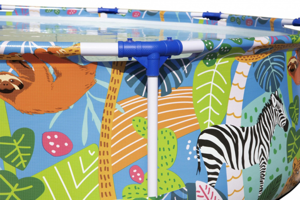 3 05 x 66 cm bietet das beste Ferienerlebnis für die Kleinen. Das Modell verfügt über fröhliche Grafiken mit Tieren und Mustern an den Wänden.Korrosionsbeständigkeit und farbenfrohes Design Die Steel Pro Bestway-Rahmenpools sind mit den Systemen DuraPlus und FrameLink ausgestattet.