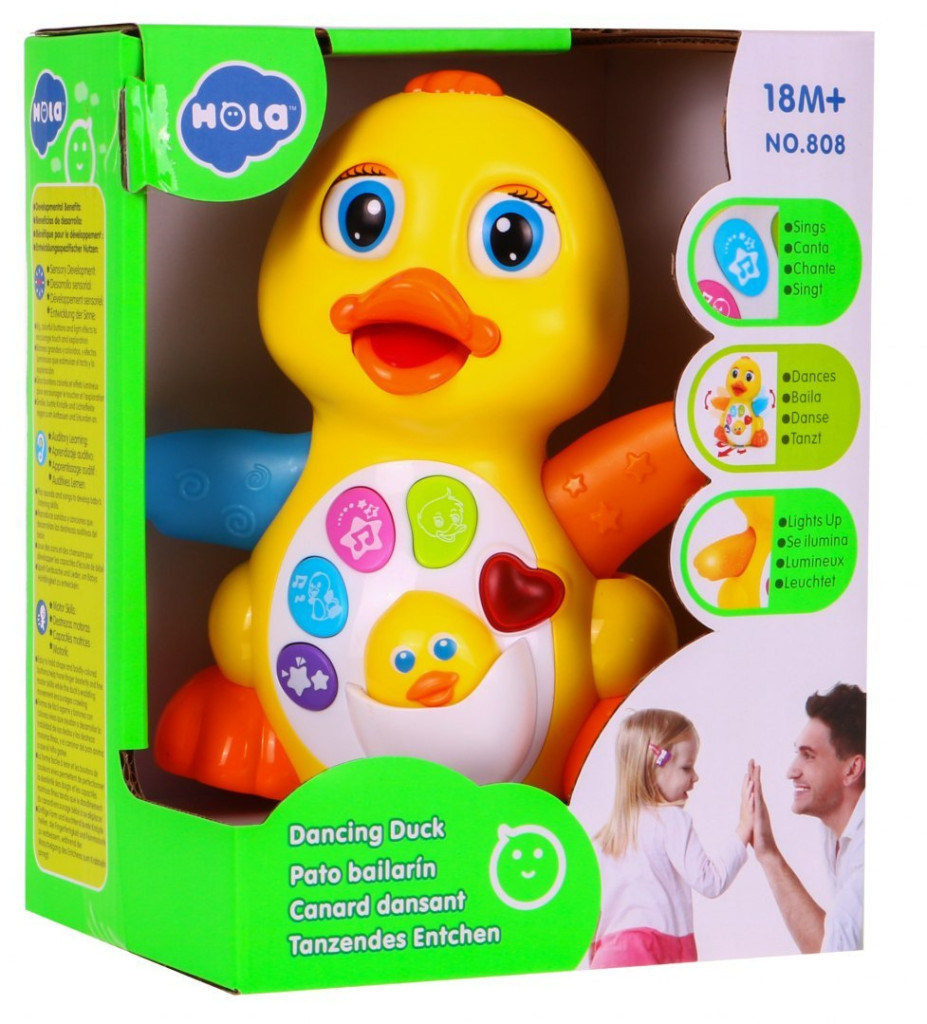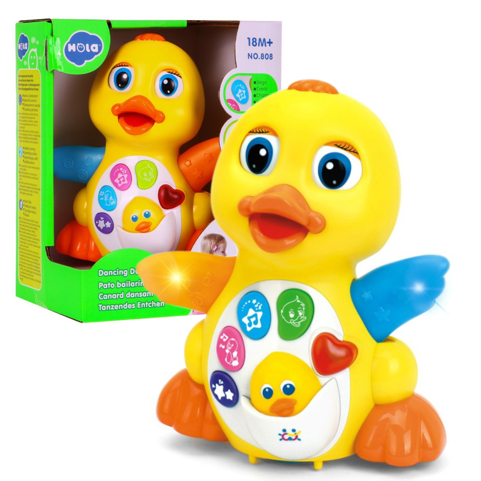 Zabawka interaktywna zaprojektowana z myślą o najmłodszych pociechach od 18-miesiąca życia. Kaczuszka posiada wiele ciekawych funkcji, ma żywe przyjemne dla oka kolory, a poszczególne elementy posiadają dodatkowe barwne dekoracje.