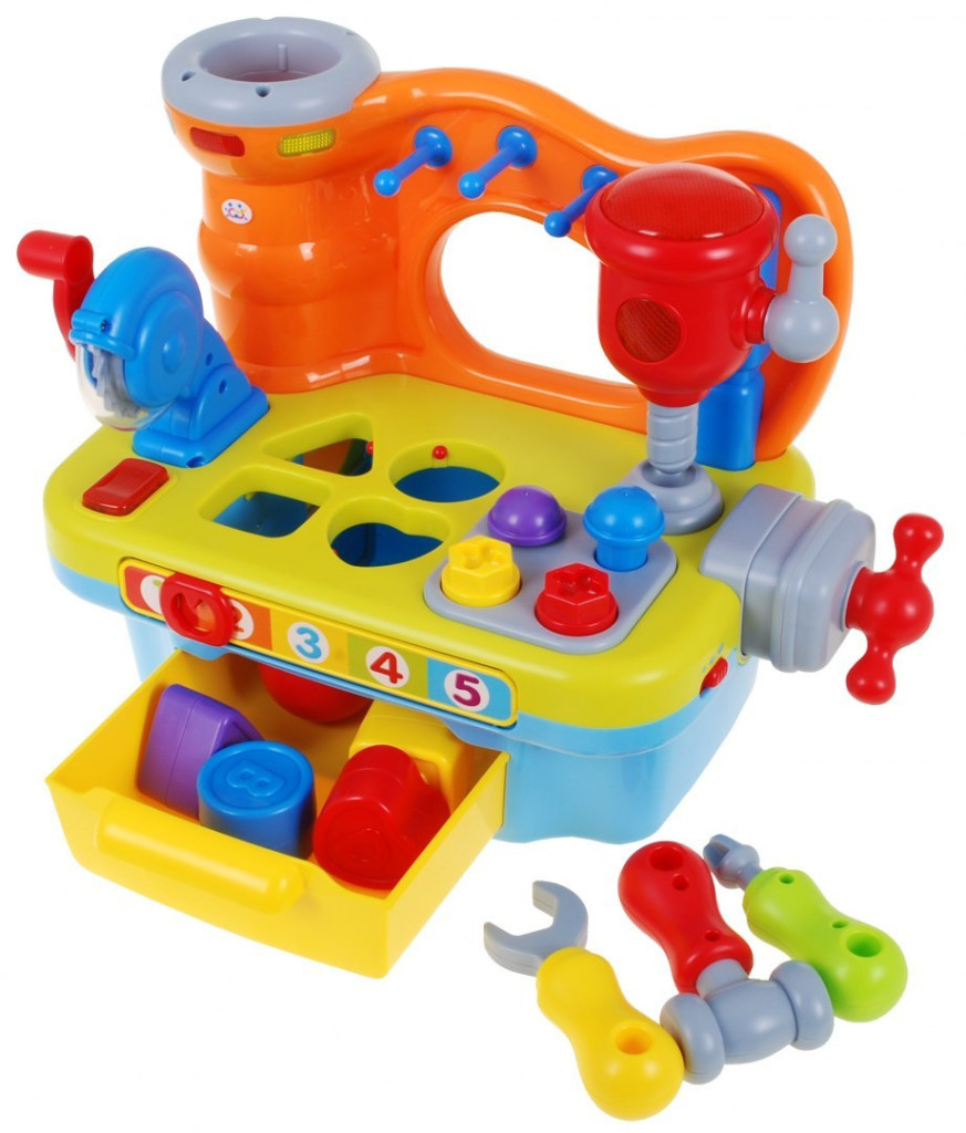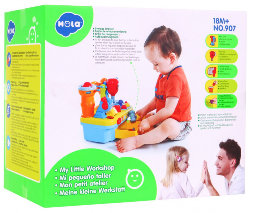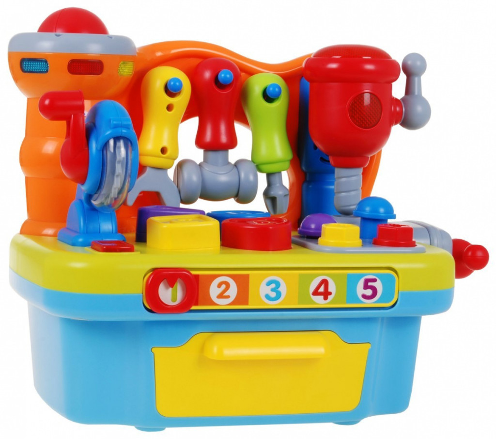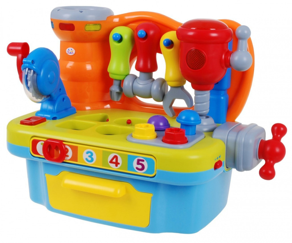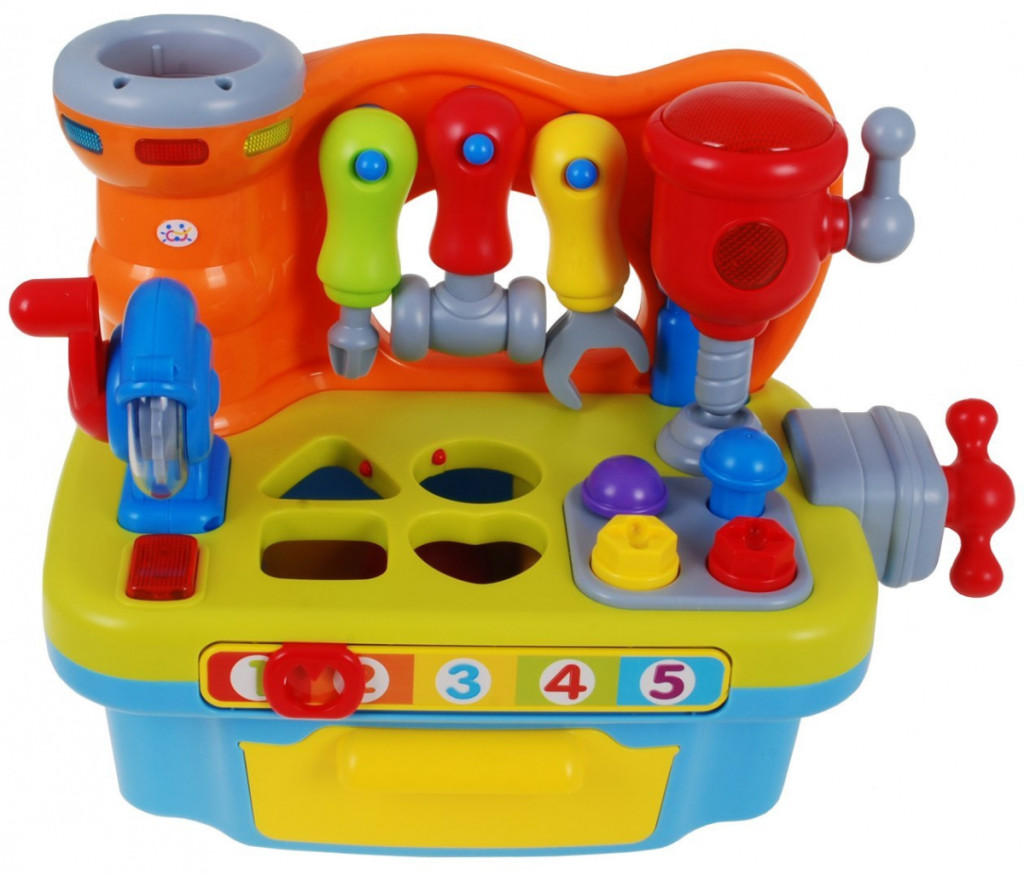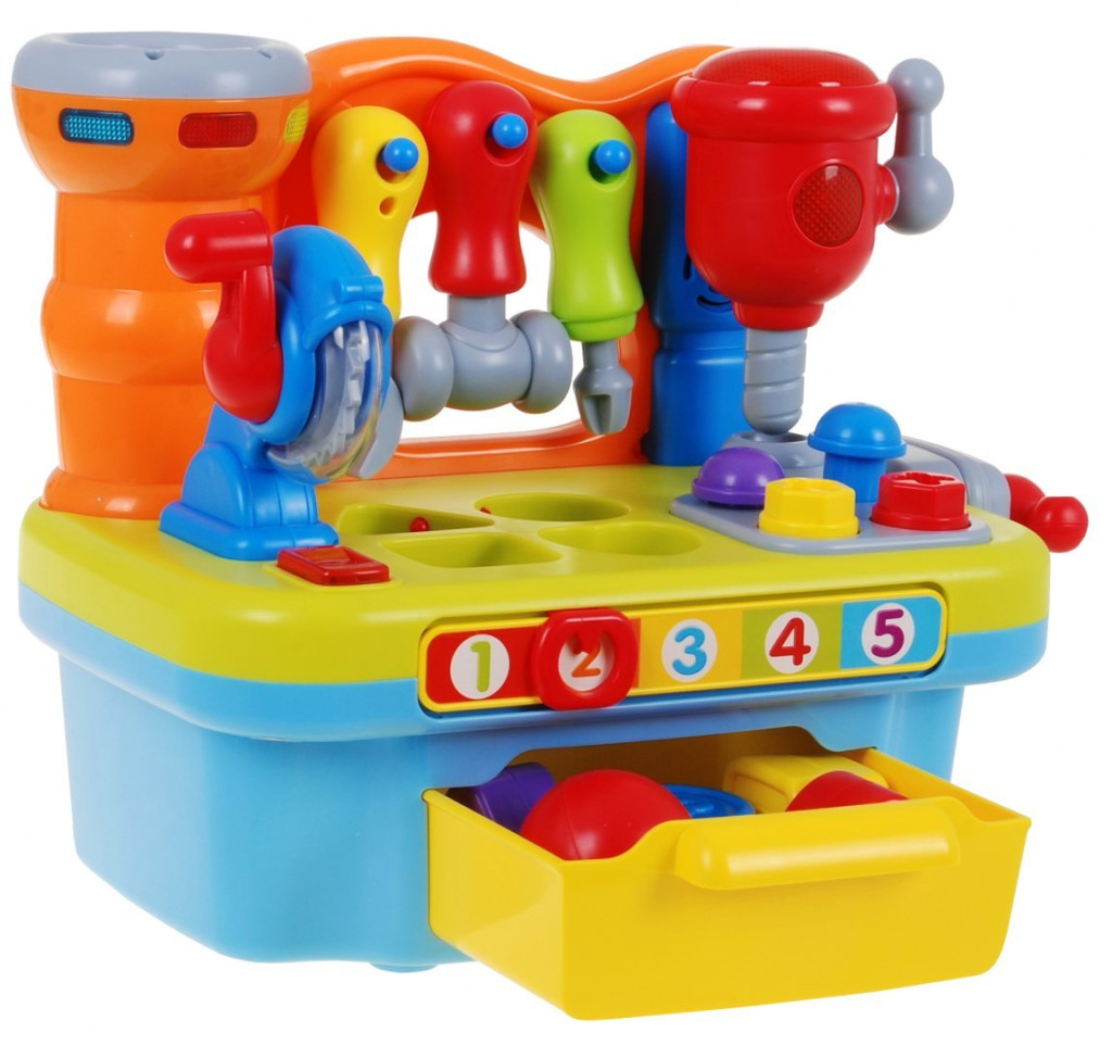 Multifunkcyjna zabawka przeznaczona dla dzieci od 18-go miesiąca życia. Warsztat majsterkowicza wyposażony jest w szereg rozmaitych funkcji.