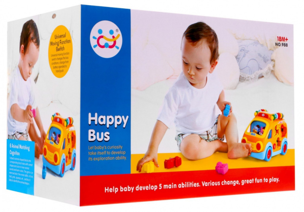 Opis Wesoły AUTOBUSIK – smart bus – busik sorter + klocki zwierzątka (988)