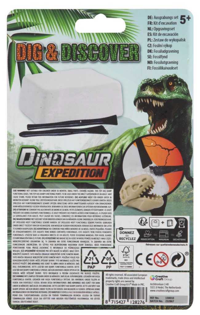 A csomag 1 db gipsztömböt tartalmaz, amely egy dinót zár magába,