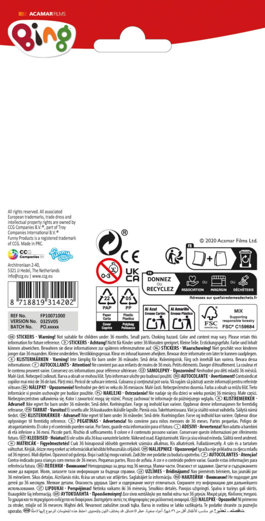 Bing Splash csillogó matrica szett