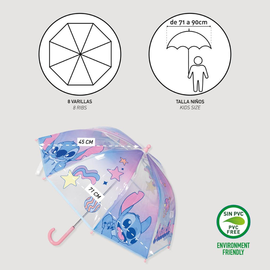 Disney Lilo és Stitch, A csillagkutya Universe gyerek átlátszó esernyő Ø71 cm
