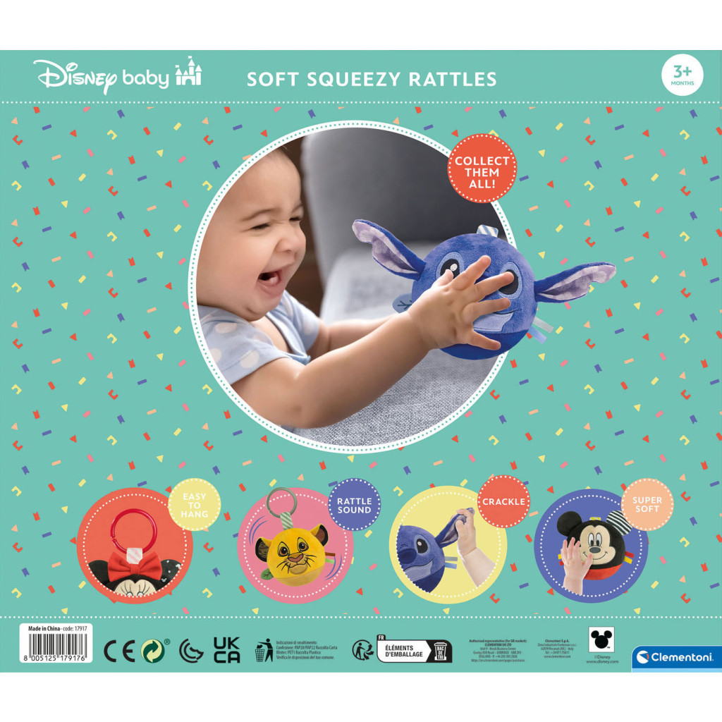 Disney Lilo és Stitch, A csillagkutya Round plüss labdafigura, baba csörgő Clementoni