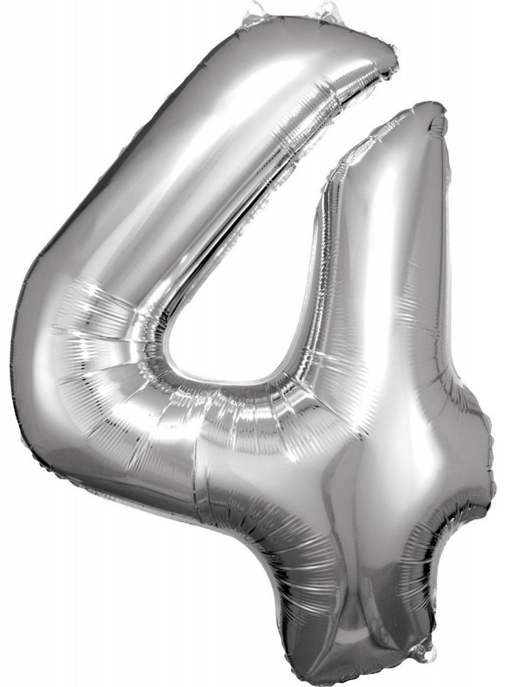 Ezüst Silver óriás szám fólia lufi 4-es, 86x66 cm