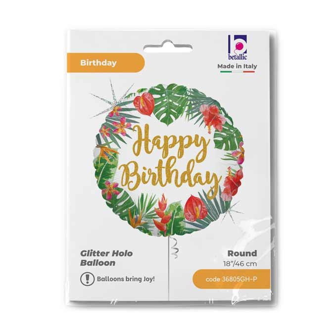 Happy Birthday Glitter Tropical fólia lufi 46 cm