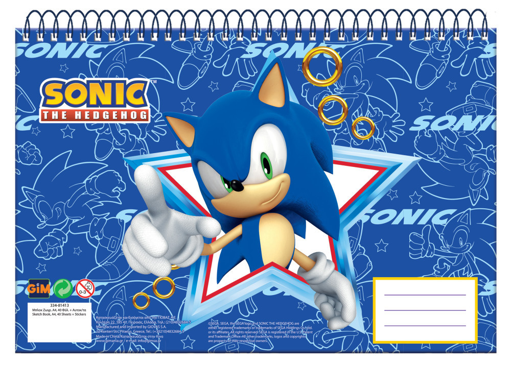 Sonic a sündisznó Rush A/4 spirál vázlatfüzet, 30 lapos
