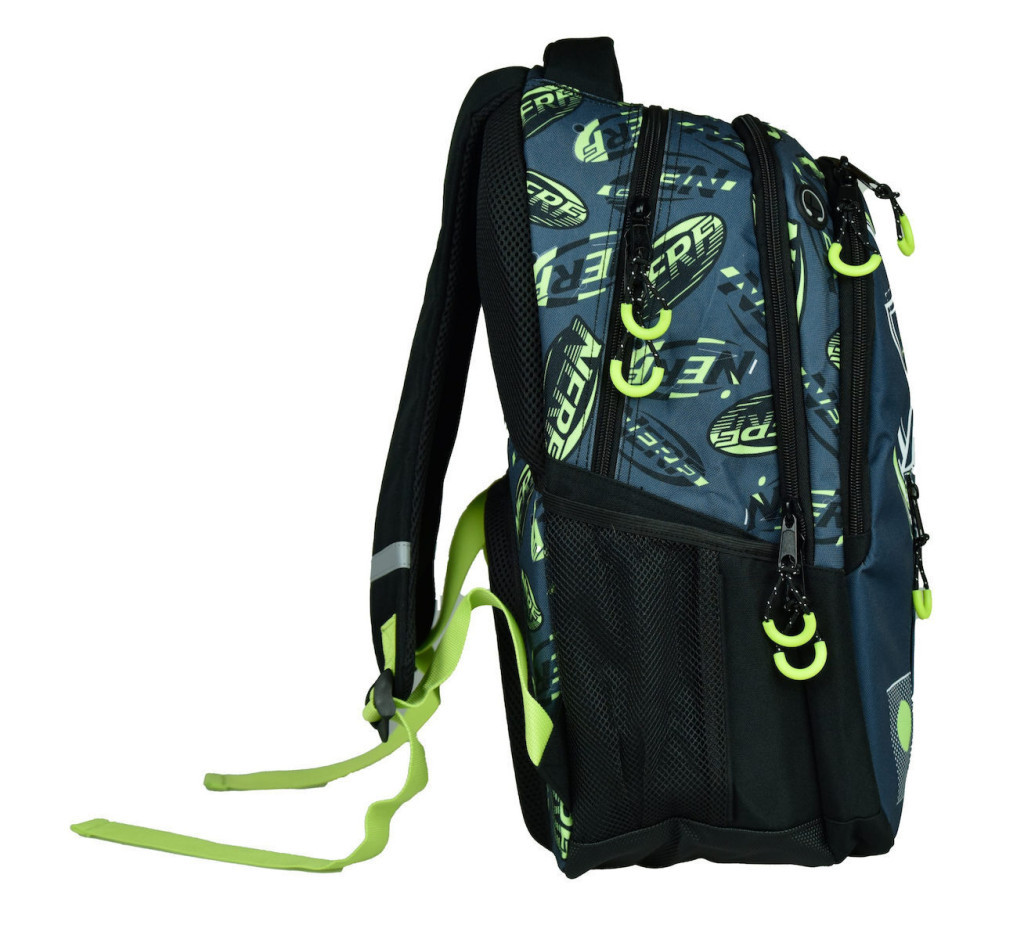 Három nagy cipzáras tárolóval rendelkezik, illetve két oldalsó kis zsebbel.