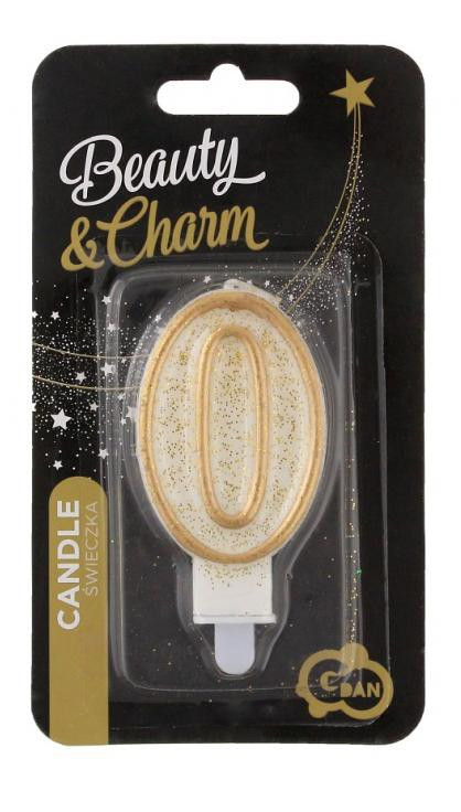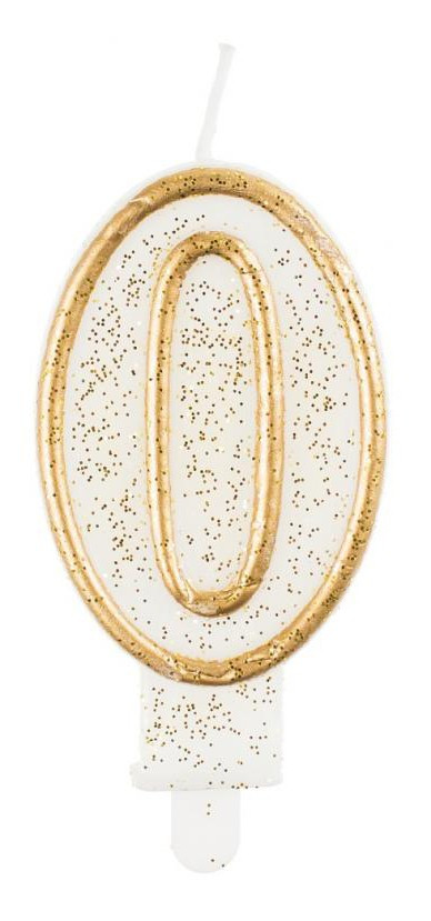 Arany csillámos 0-ás Gold számgyertya, tortagyertya