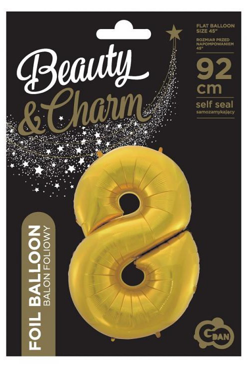 Arany 8-as Gold Mat szám fólia lufi 92 cm