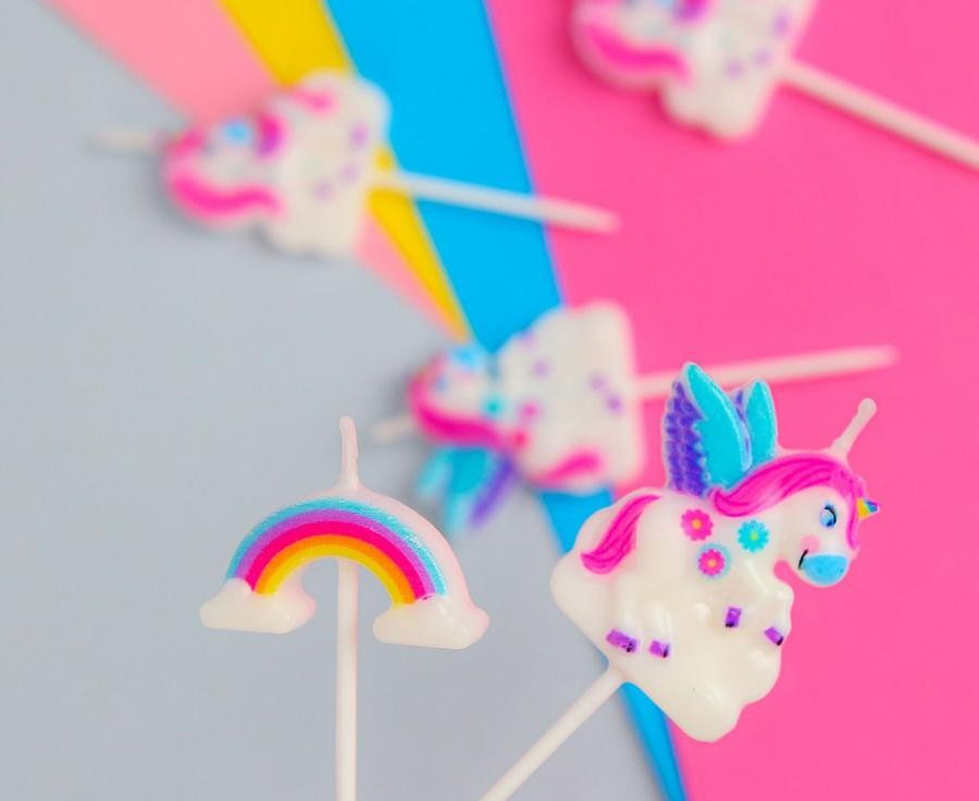 Unikornis Rainbow tortagyertya, gyertya szett 5 db-os