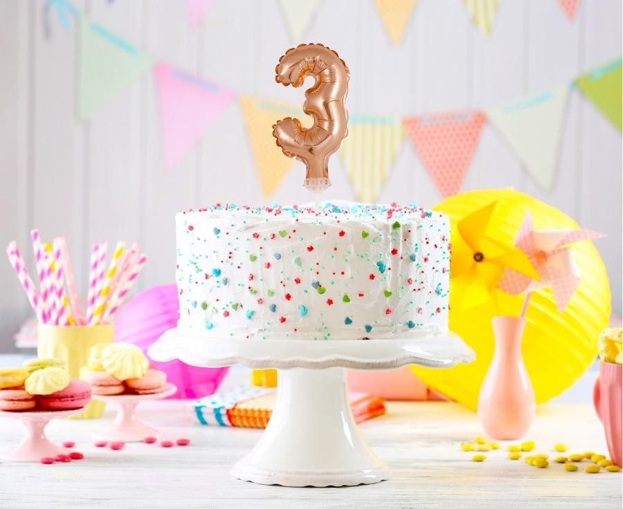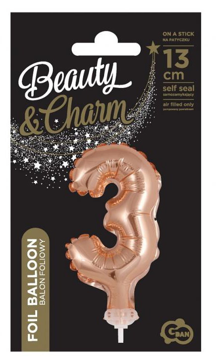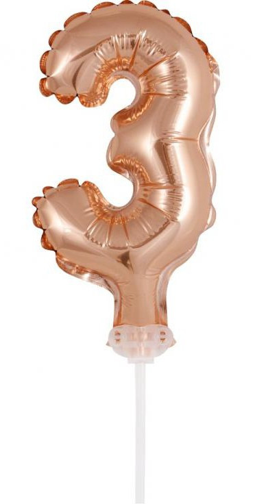 Rose Gold 3-as szám fólia lufi tortára 13 cm