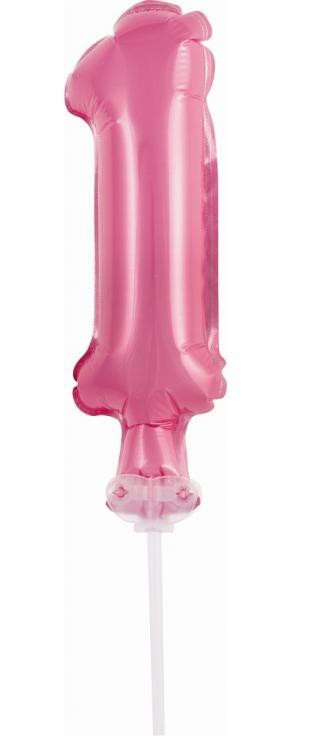 Rózsaszín 1-es Pink szám fólia lufi tortára 13 cm