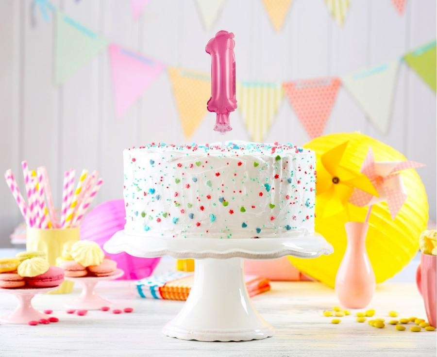 Rózsaszín 1-es szám fólia lufi tortára 13 cm