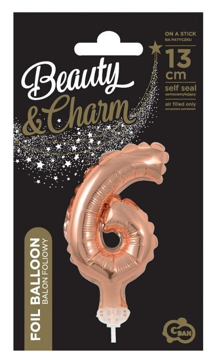 Rose Gold 6-os szám fólia lufi tortára 13 cm