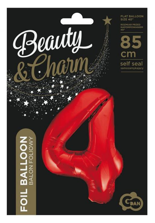Piros 4-es Red szám fólia lufi 85 cm