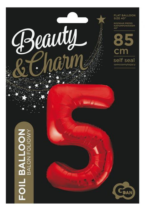 Piros 5-ös szám fólia lufi 85 cm