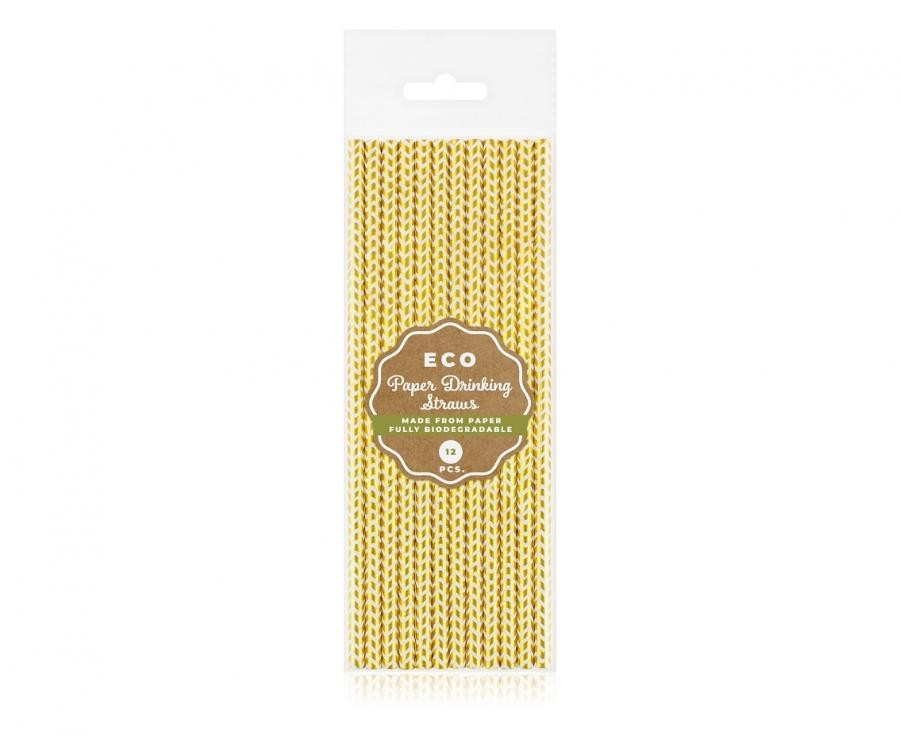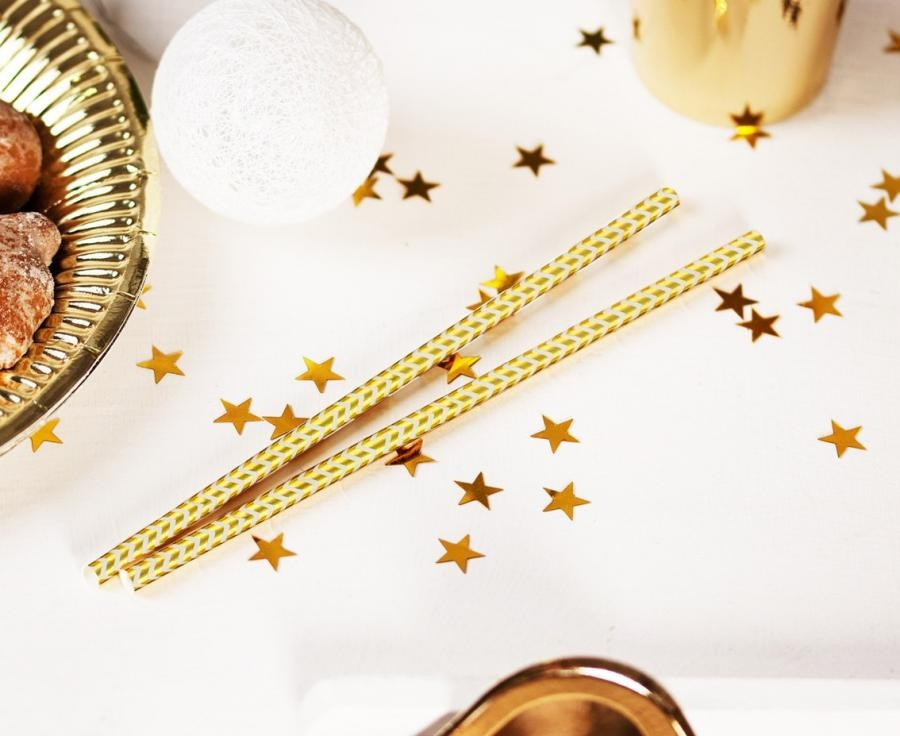 Arany Gold Chevron papír szívószál 12 db-os