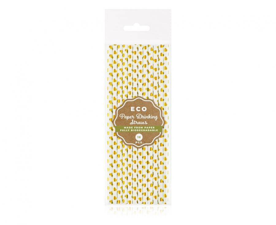 Arany szív Gold Heart papír szívószál 12 db-os