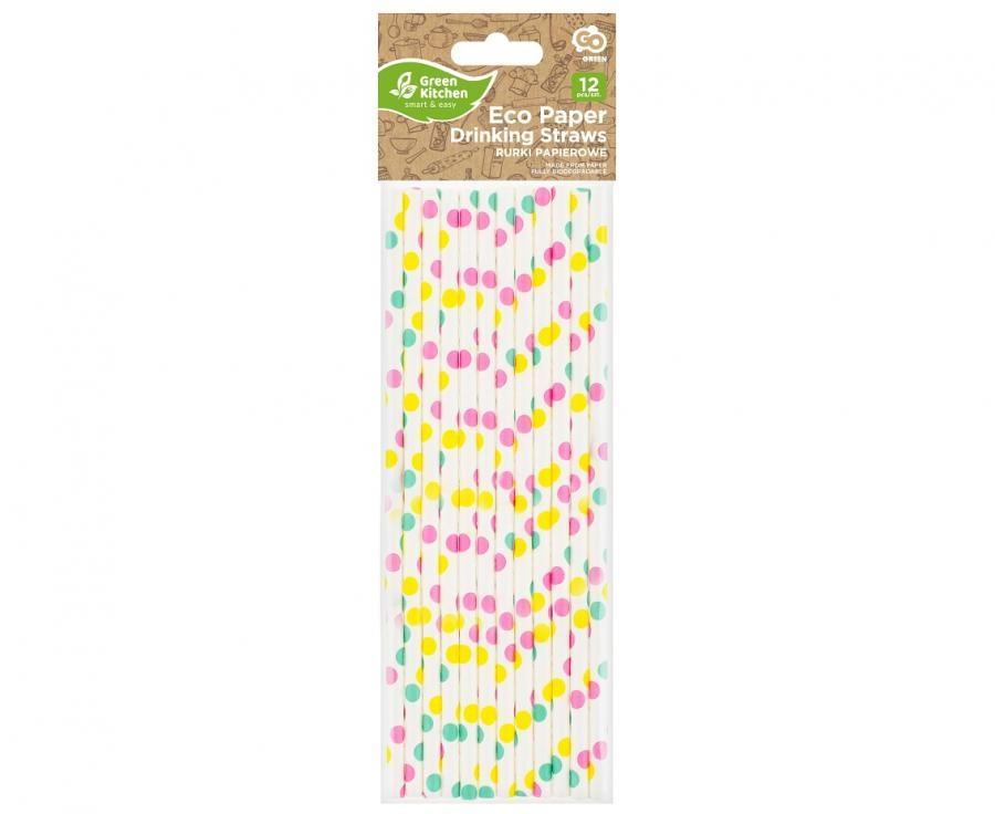 Színes Colorful Dots papír szívószál 12 db-os