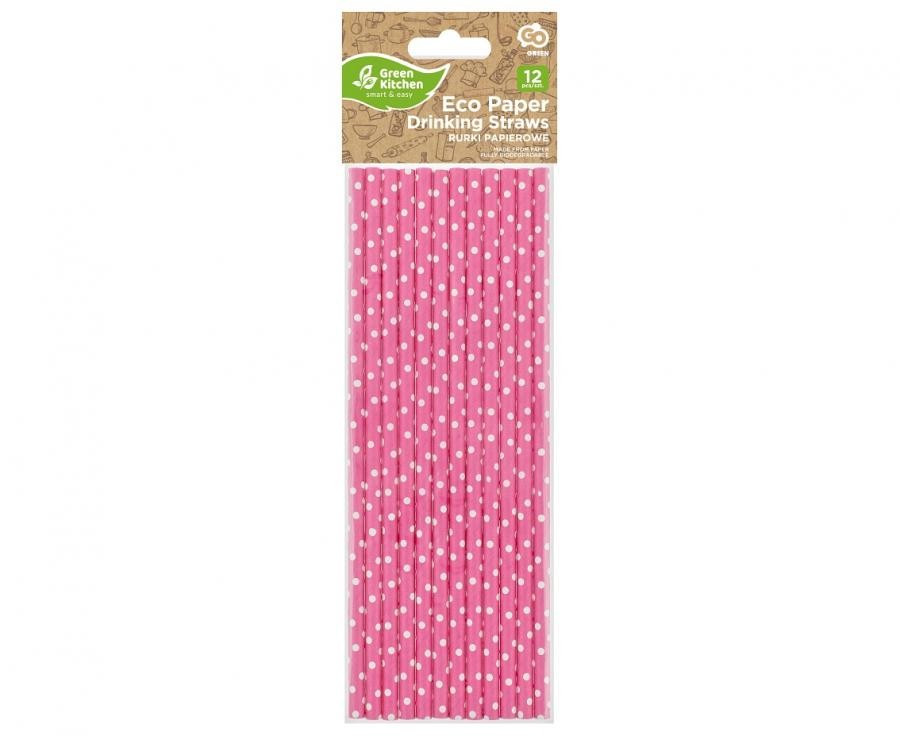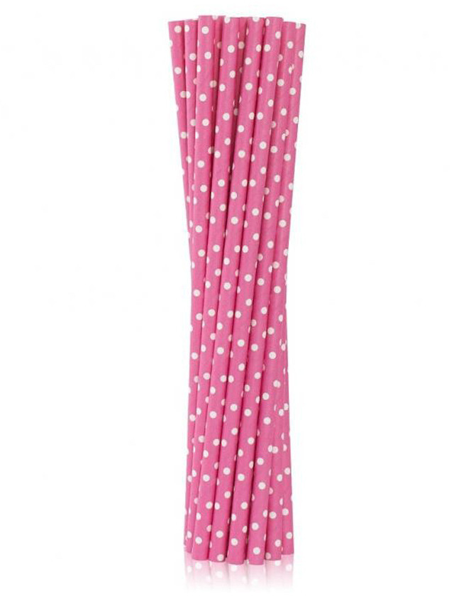 Rózsaszín Pink Dots papír szívószál 12 db-os