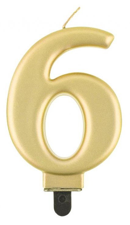 Arany 6-os Metallic számgyertya, tortagyertya