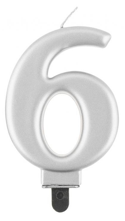 Ezüst 6-os Metallic számgyertya, tortagyertya