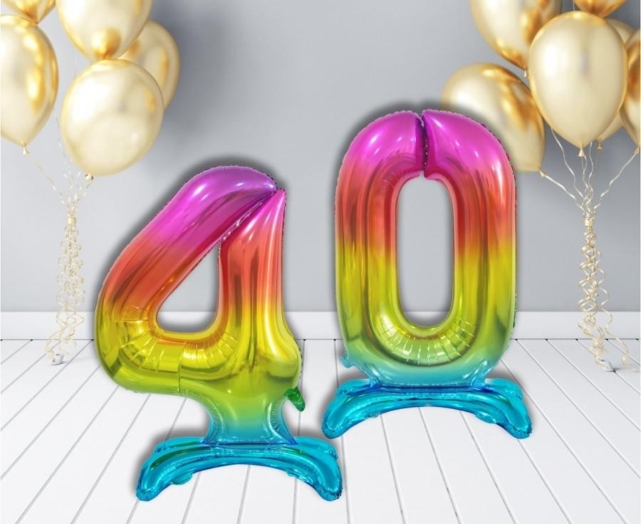 Színes Rainbow 4-es szám fólia lufi talppal 74 cm