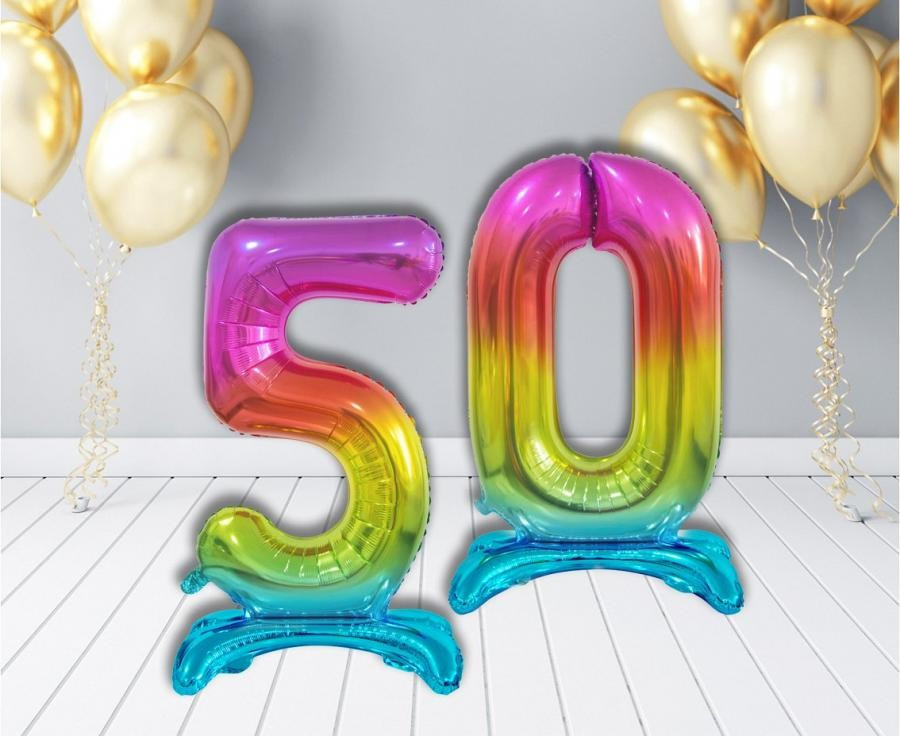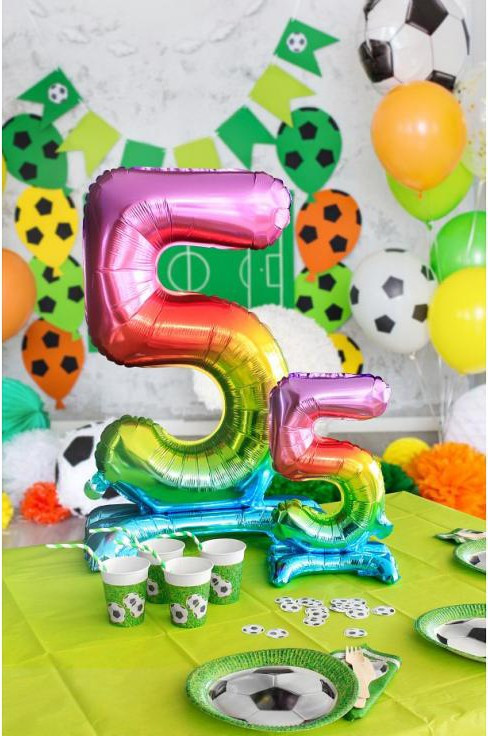 Színes Rainbow 5-ös szám fólia lufi talppal 74 cm