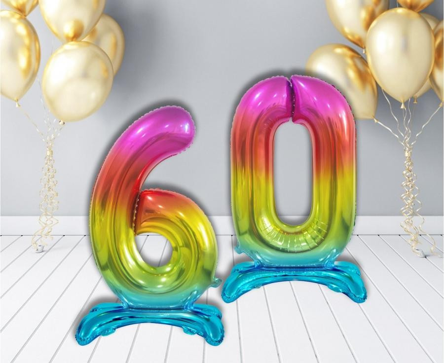 Színes Rainbow 6-os szám fólia lufi talppal 74 cm