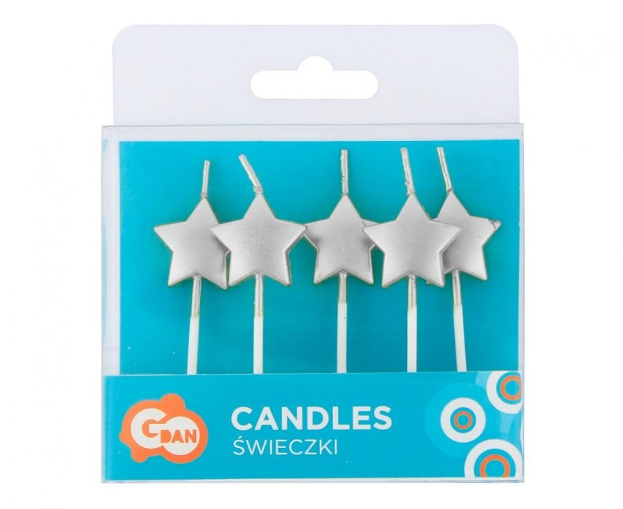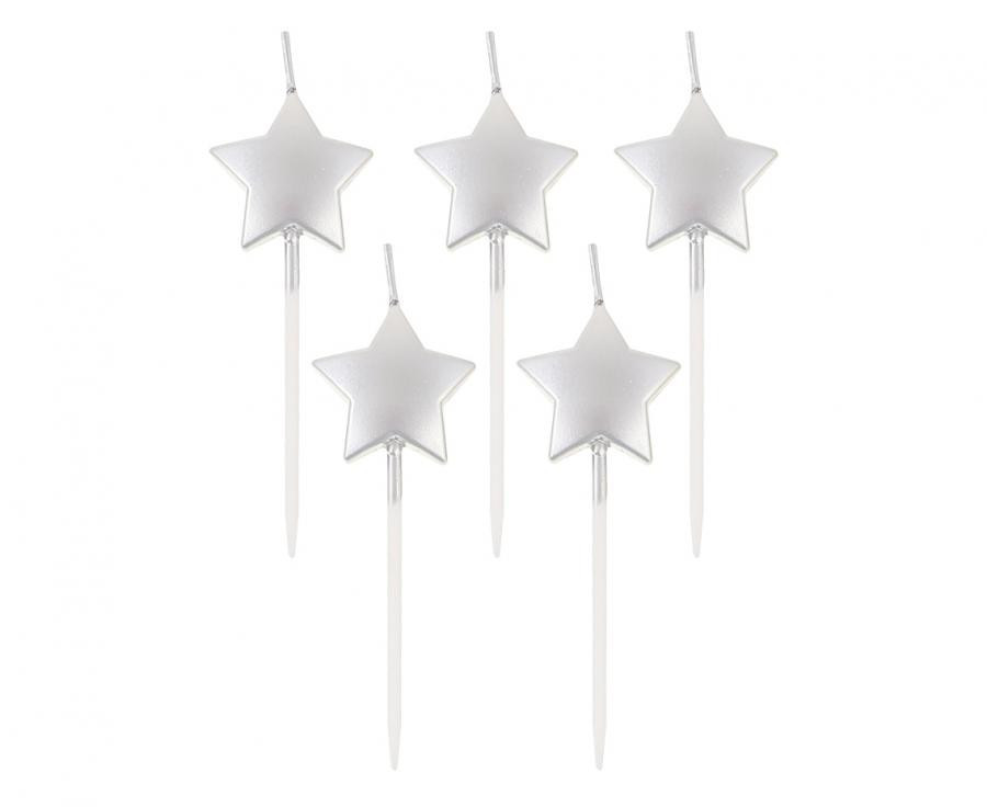 Ezüst csillag tortagyertya, gyertya szett 5 db-os