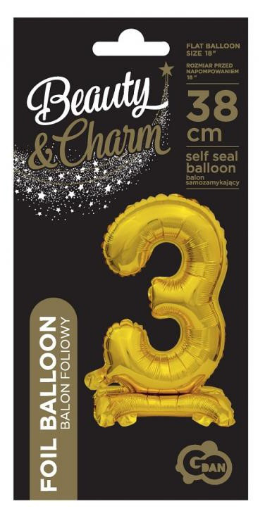 Arany B&C Gold mini 3-as szám fólia lufi talppal 38 cm