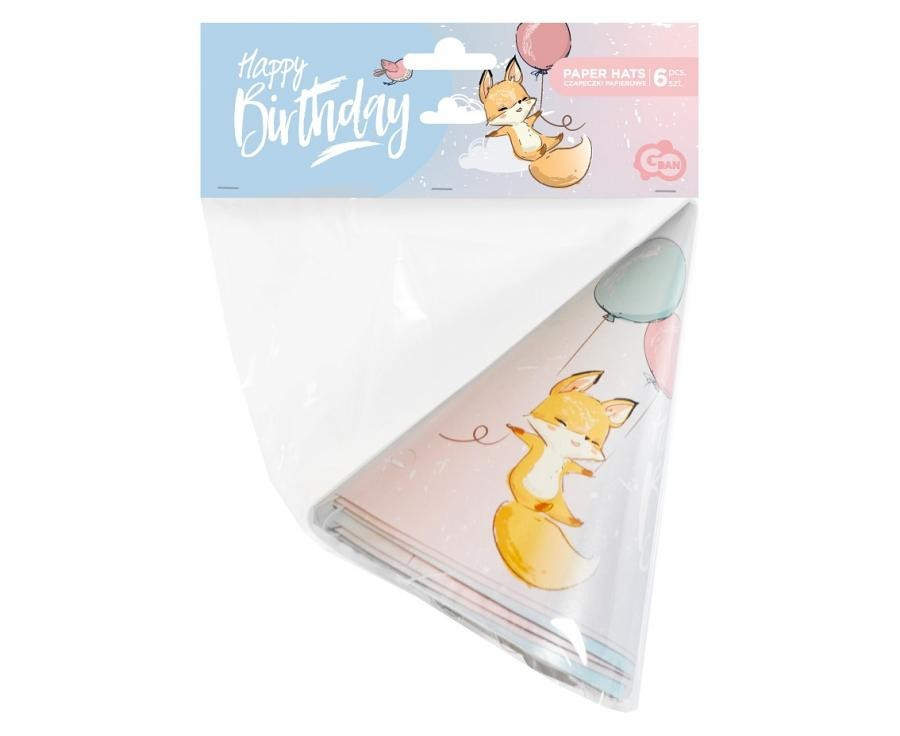 Róka Happy Birthday Fox party kalap, csákó 6 db-os
