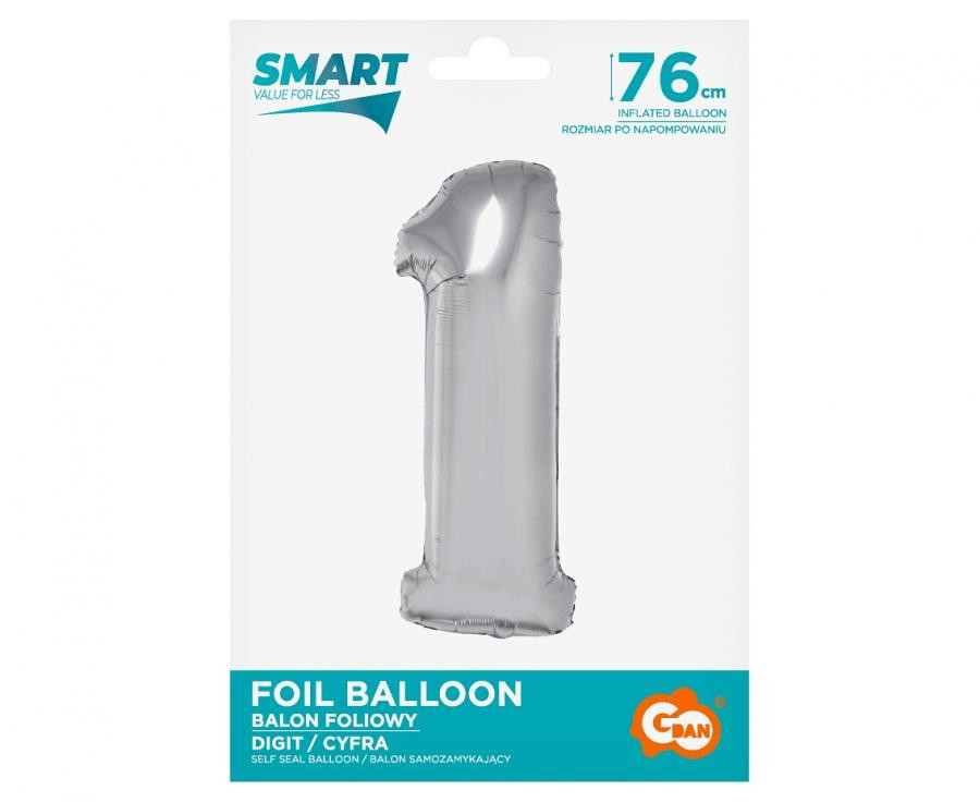 Ezüst 1-es Silver szám fólia lufi 76 cm