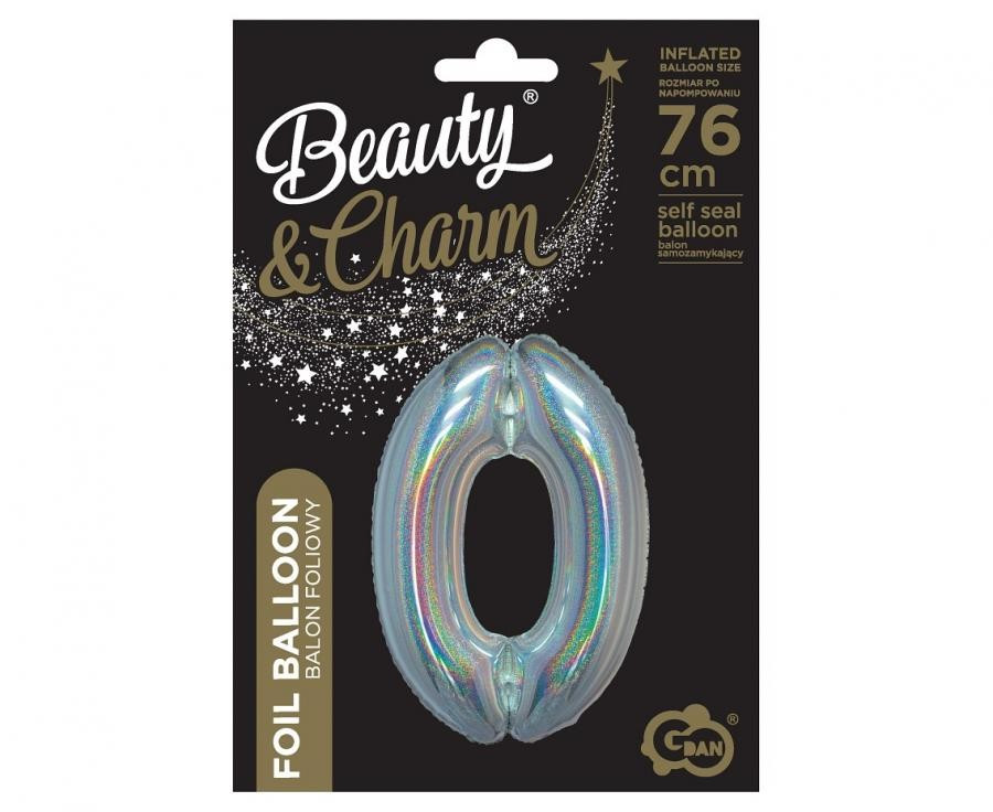 Ezüst Holographic 0-ás szám fólia lufi 76 cm