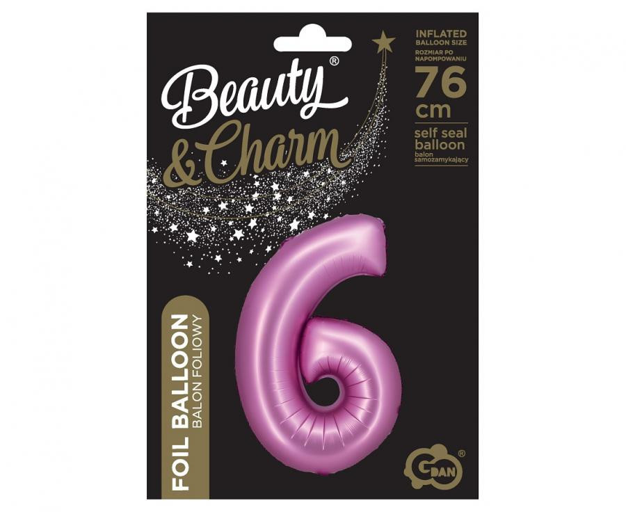 Satin Pink, Rózsaszín 6-os szám fólia lufi 76 cm