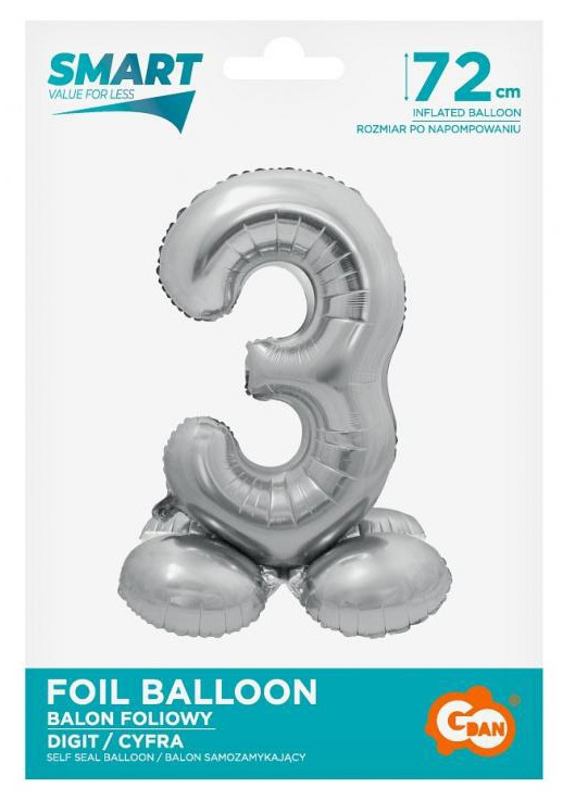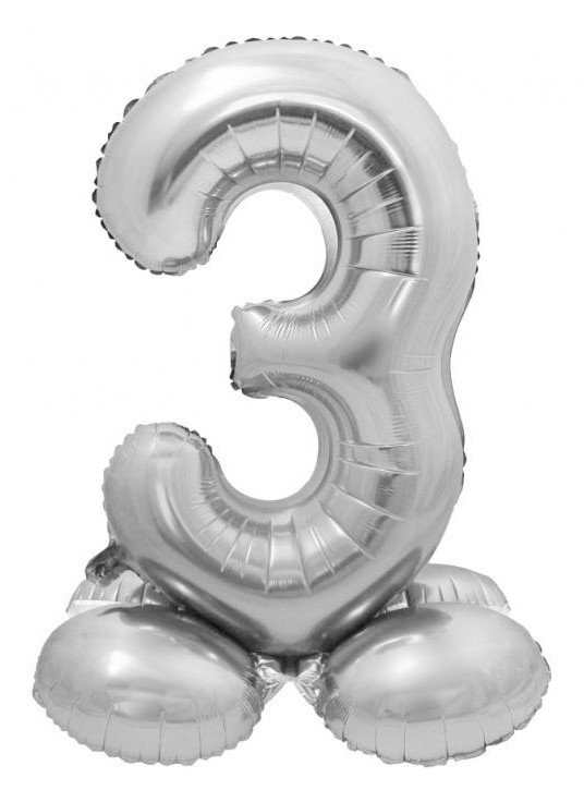 Ezüst 3-as szám fólia lufi talppal 72 cm
