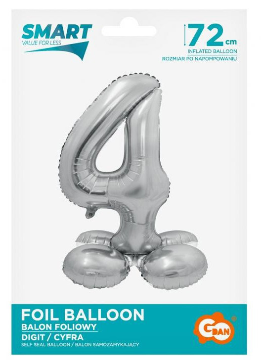 Ezüst 4-es szám fólia lufi talppal 72 cm