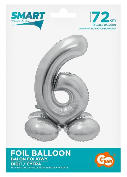 Ezüst 6-os szám fólia lufi talppal 72 cm