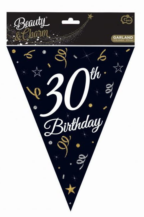 Happy Birthday 30 B&C zászlófüzér 270 cm