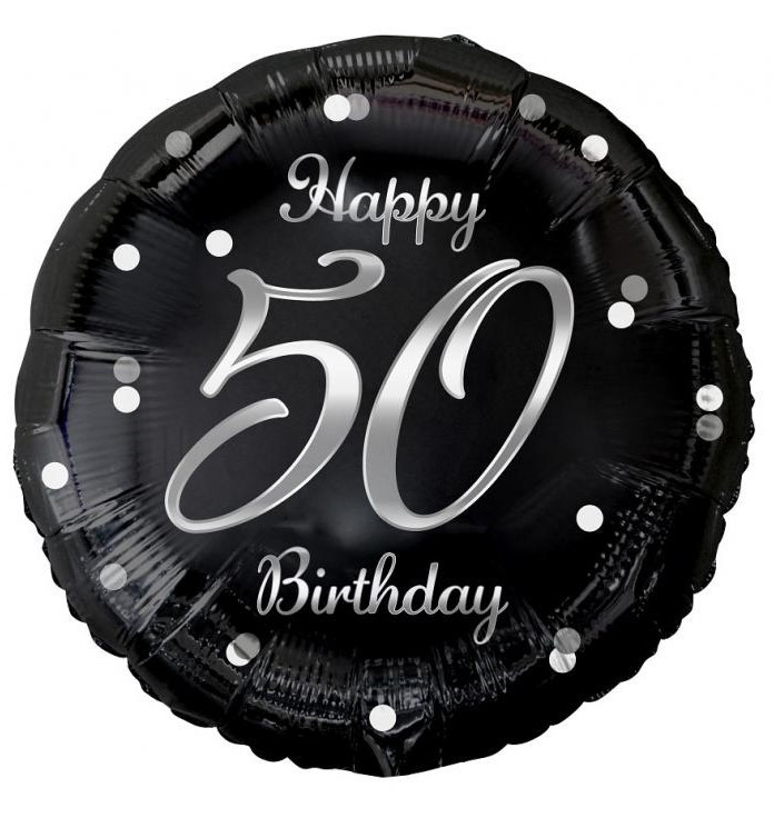 Happy Birthday 50 B&C Silver fólia lufi 36 cm