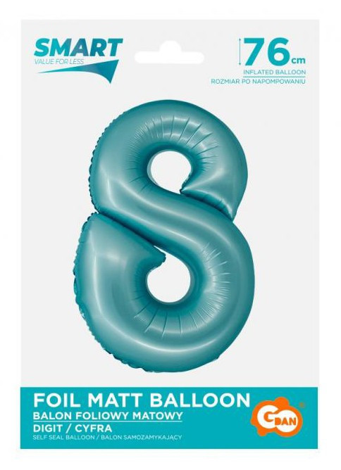 Kék 8-as Light Blue Mat szám fólia lufi 76 cm