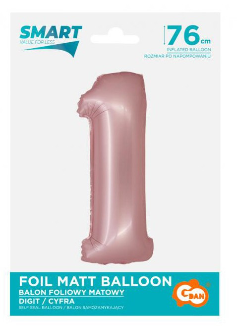 Rózsaszín 1-es Light Pink Mat szám fólia lufi 76 cm
