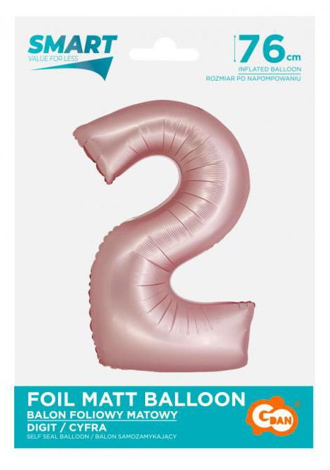 Rózsaszín 2-es Light Pink Mat szám fólia lufi 76 cm