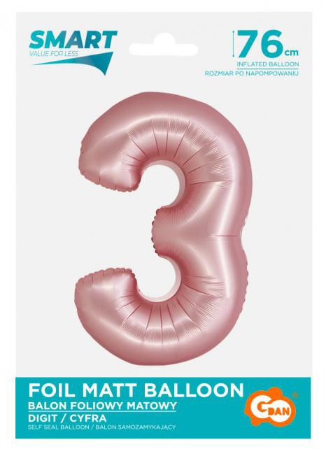 Rózsaszín 3-as Light Pink Mat szám fólia lufi 76 cm